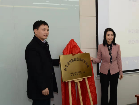 会议首先为西安市社科院、西北政法大学共同成立的“西安党风廉政建设研究基地”揭牌。西安市纪委副书记、监委副主任李红雨和西北政法大学党委副书记、纪委书记、监察专员肖道远共同为“西安党风廉政建设研究基地”揭牌。西安市社科院党组书记、院长高东新与肖道远书记代表双方致辞发言。双方均表示“党风廉政建设研究基地”的成立恰逢其时、意义重大,是贯彻落实习近平总书记来陕考察重要讲话精神和党中央关于全面从严治党向纵深发展要求的实际举措。双方今后将在课题研究、人才队伍建设、学术交流等方面深度合作,发挥好研究基地的理论支撑和智力支持作用。