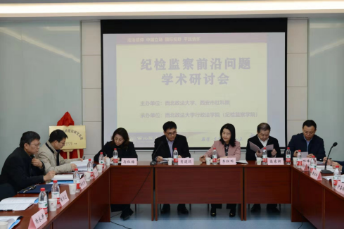 2020年12月4日上午,由西北政法大学、西安市社科院主办,西北政法大学行政法学院(纪检监察学院)承办的“纪检监察前沿问题学术研讨会”在西北政法大学雁塔校区召开。本次会议是西北政法大学纪检监察学院挂牌以后举行的首次学术研讨会,是加强监察法学科、监察法教研室建设的重要举措。来自陕西省纪委监委、西安市纪委监委、西安市社科院、西北大学、西安文理学院、西北政法大学行政法学院(纪检监察学院)监察法学科的领导、专家40余人参加会议。