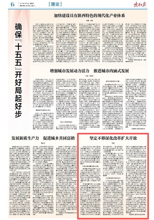 实践充分证明,改革是破除体制机制障碍的“手术刀”,开放是分享经济全球化红利的“金钥匙”,坚定不移深化改革扩大开放,能够在激烈复杂的国际竞争中占据优势、保持战略主动,不断释放发展活力、增添动力、挖掘潜力,突破瓶颈、补齐短板、锻造长板,在激烈的国际竞争中占据优势、保持主动、赢得未来,不断开创高质量发展新局面。(作者单位:西安市社会科学院)