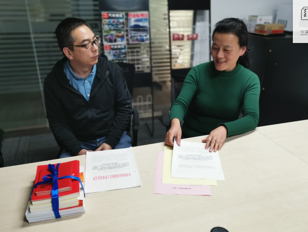 图为院(联)办公室党支部与西安曲江驭动传媒有限公司工作人员进行“双联双送双促”对接工作,为企业送去党建相关书籍,询问企业经营困难,搭建联络桥梁。