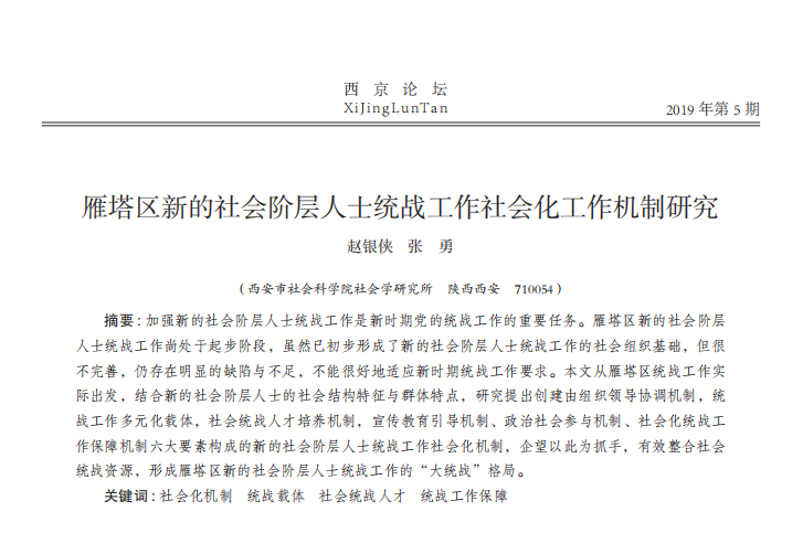 雁塔区新的社会阶层人士统战工作社会化工作机制研究