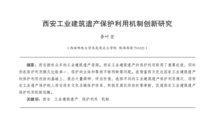 西安工业建筑遗产保护利用机制创新研究