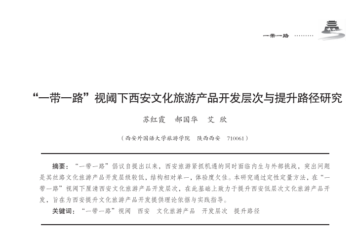 “一带一路”视域下西安文化旅游产品开发层次与提升路径研究