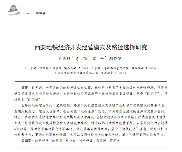 西安地铁经济开发经营模式及路径选择研究