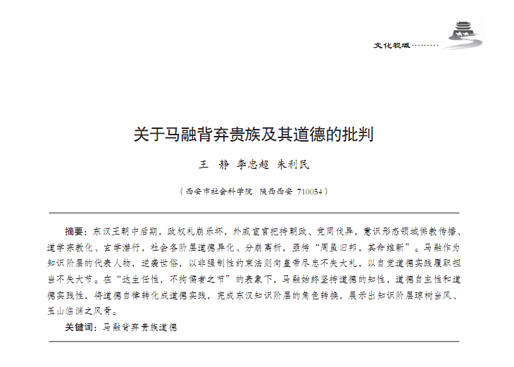 关于马融背弃贵族及其道德的批判