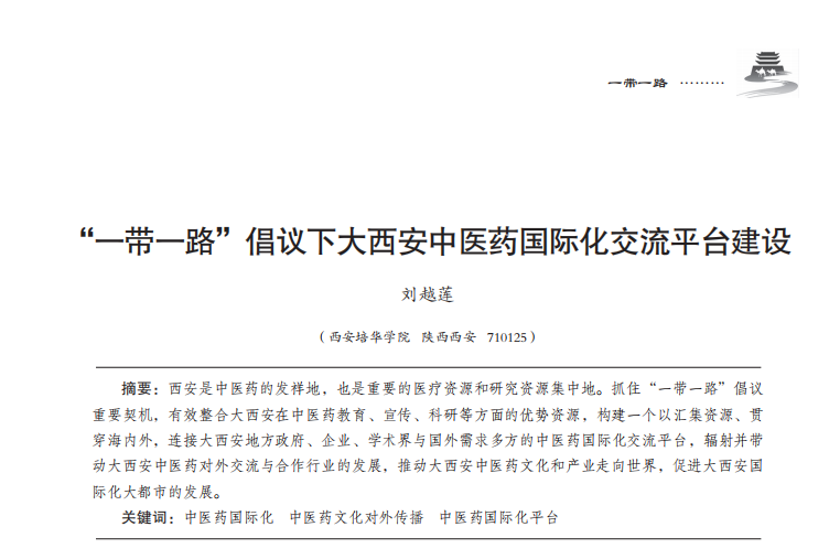 “一带一路”倡议下大西安中医药国际化交流平台建设