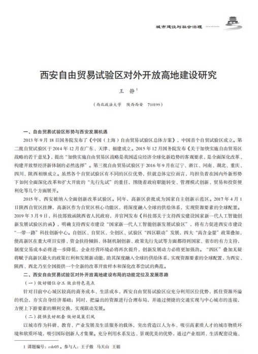 西安自由贸易试验区对外开放高地建设研究