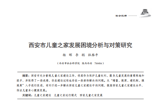 西安市儿童之家发展困境分析与对策研究
