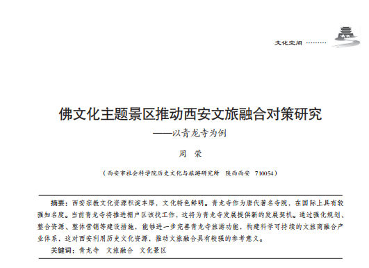 佛文化主题景区推动西安文旅融合对策研究——以青龙寺为例