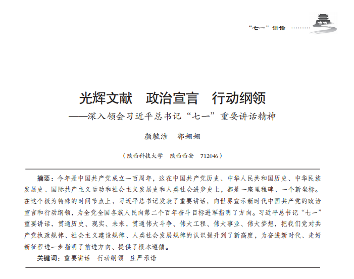 光辉文献 政治宣言 行动纲领 ——深入领会习近平总书记“七一”重要讲话精神
