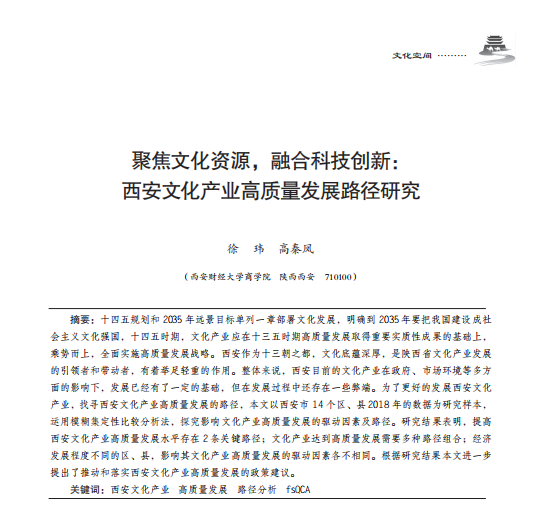 聚焦文化资源,融合科技创新:西安文化产业高质量发展路径研究