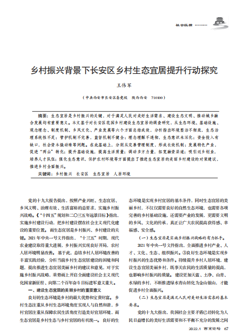 乡村振兴背景下长安区乡村生态宜居提升行动探究