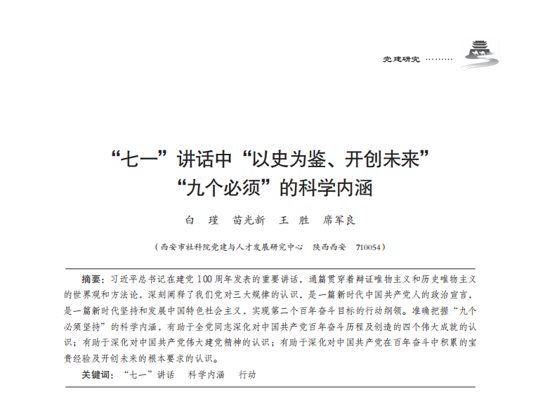 “七一”讲话中“以史为鉴、开创未来”“九个必须”的科学内涵