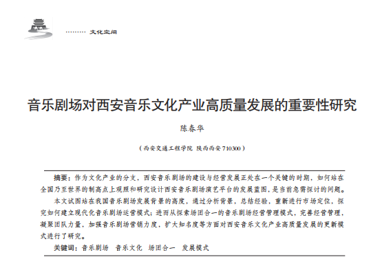 音乐剧场对西安音乐文化产业高质量发展的重要性研究
