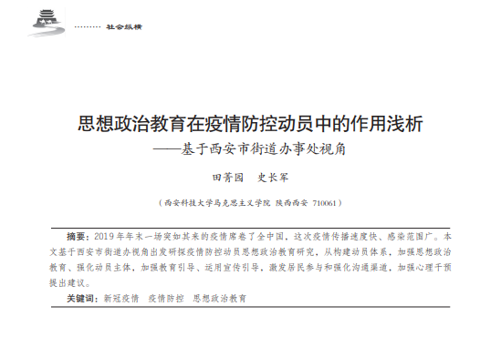 思想政治教育在疫情防控动员中的作用浅析——基于西安市街道办事处视角