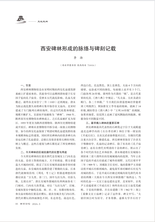 西安碑林形成的脉络与碑刻记载