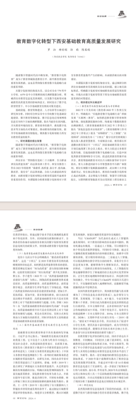 教育数字化转型下西安基础教育高质量发展研究
