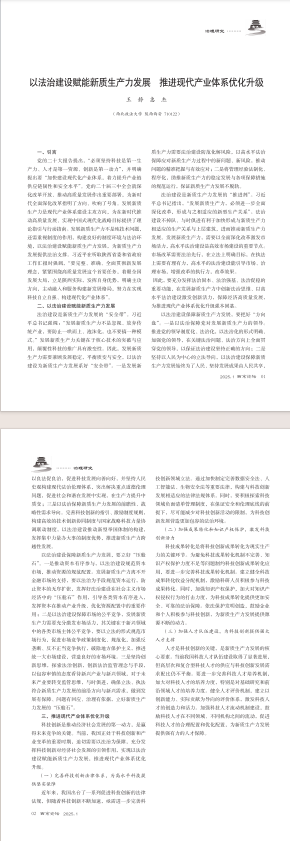 以法治建设赋能新质生产力发展 推进现代产业体系优化升级