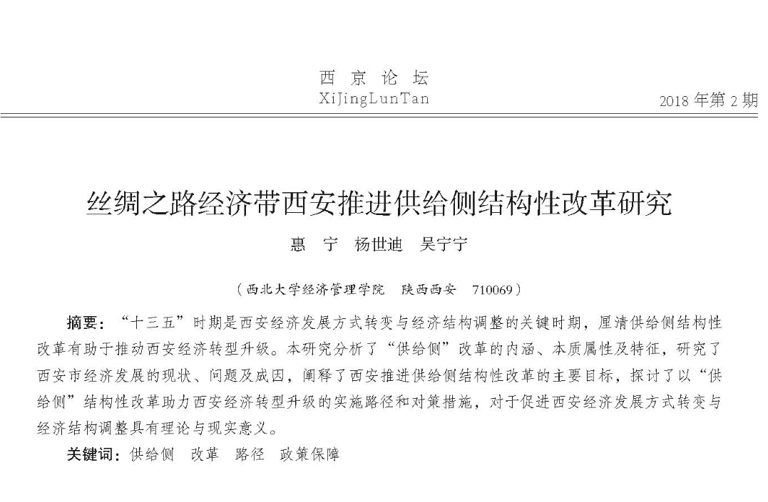 丝绸之路经济带西安推进供给侧结构性改革研究