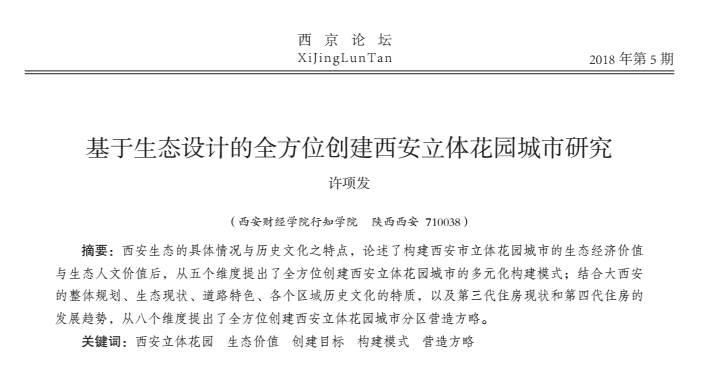 基于生态设计的全方位创建西安立体花园城市研究