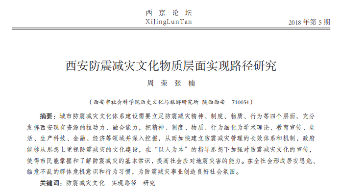 西安防震减灾文化物质层面实现路径研究