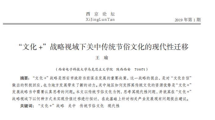 “文化+”战略视域下关中传统节俗文化的现代性迁移