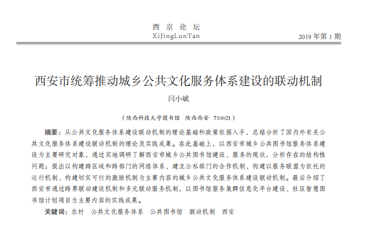 西安市统筹推动城乡公共文化服务体系建设的联动机制