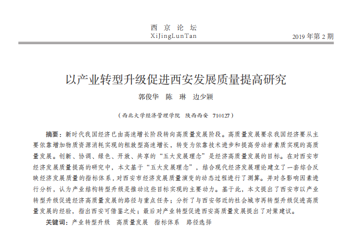 以产业转型升级促进西安发展质量提高研究