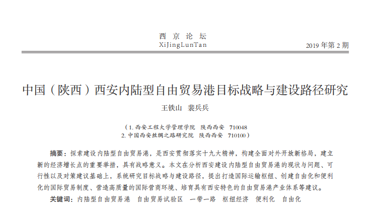 中国(陕西)西安内陆型自由贸易港目标战略与建设路径研究