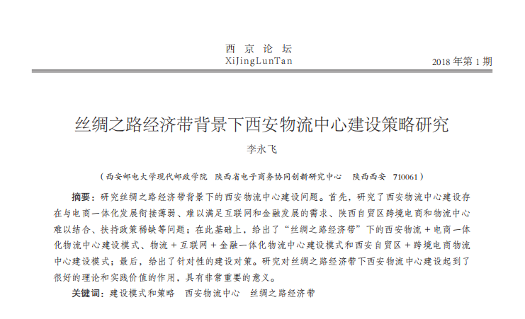 丝绸之路经济带背景下西安物流中心建设策略研究