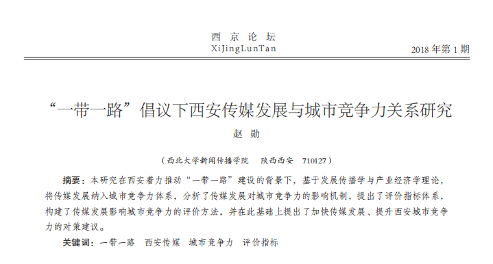 “一带一路”倡议下西安传媒发展与城市竞争力关系研究