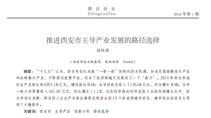 推进西安市主导产业发展的路径选择