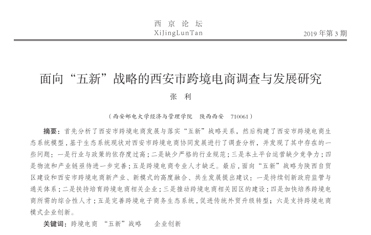 面向“五新”战略的西安市跨境电商调查与发展研究
