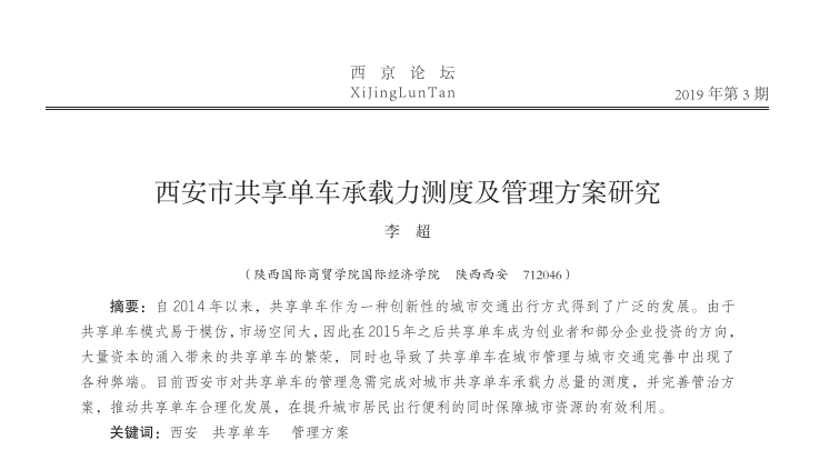 西安市共享单车承载力度及管理方案研究