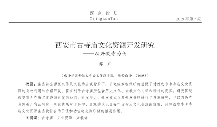 西安市古寺庙文化资源开发研究———以兴教寺为例