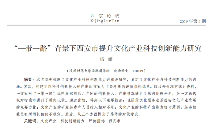 “一带一路”背景下西安市提升文化产业科技创新能力研究